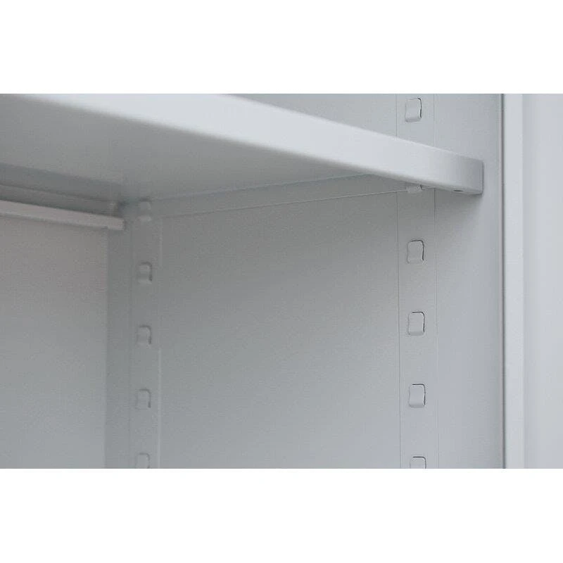 ClassiX AktenregalUniversell einsetzbar zum übersichtlichen Sortieren, Aufbewahren und Organisieren von Ordnern und Aufbewahrungsboxen oder Büchern für Büros, Lagerräume, Archive, Keller, Containereinrichtungen und Containerbüros.StandardausstattungLanglebige, pflegeleichte, verschweißte Stahlkonstruktion2 im 50 mm Raster verstellbare Fachböden in Korpusfarbe für 3 OrdnerhöhenTragkraft bis zu 65 kg je FachbodenKorpus und Türen elektrostatisch glatt pulverbeschichtetFarbe: RAL 7035 lichtgrauMaße: H 1200 x B 800 x T 380 mmLieferung & MontageLieferung frei BordsteinkanteVerpackt in Karton und Folie auf Palette – SelbstentsorgungMontiert – Fachböden müssen eingelegt werden