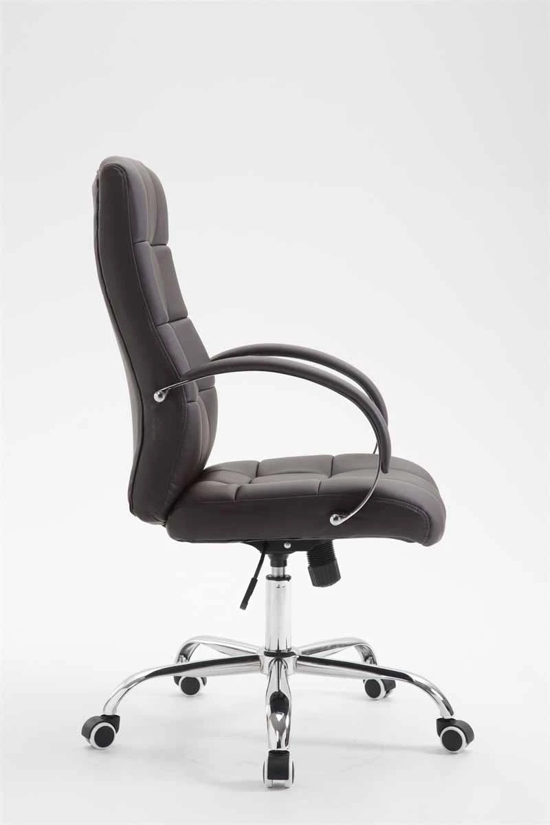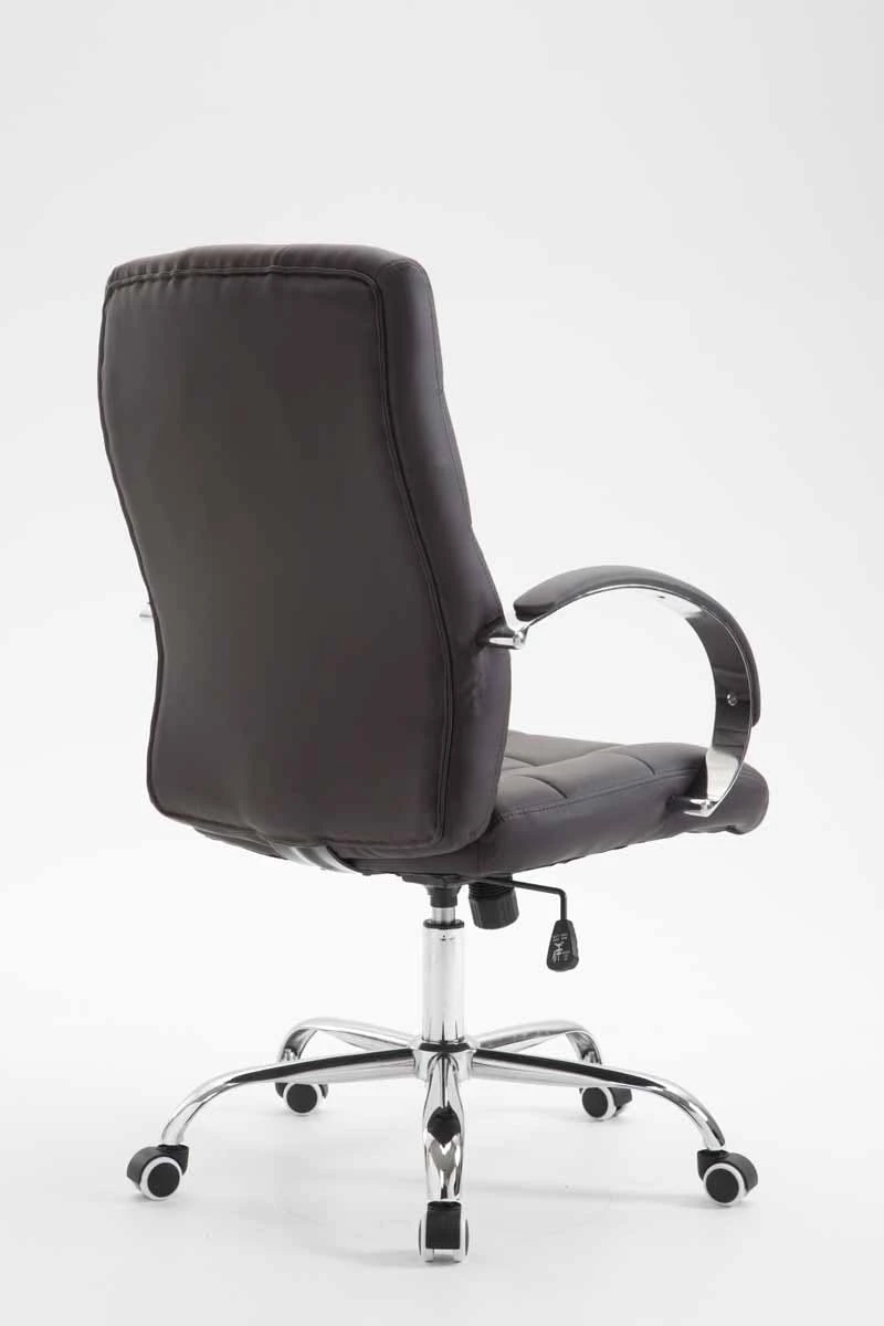 Der Chefsessel Mikos ist ein extrem hochwertiger Bürostuhl mit einer sehr hochwertigen Polsterung und Kunstlederbezug. Kunstlederbezüge haben den Vorteil, dass sie elastisch sind und sich bei Entlastung wieder glatt ziehen. Dies sieht nicht nur schöner aus, sondern erhöht zusätzlich die Lebensdauer des Sitzbezuges. Kunstlederbezüge sind außerdem atmungsfähig, was grade bei hohen Temperaturen ein Vorteil ist. Das Gestell ist aus Metall und sehr stabil. Der Stuhl steht standsicher auf fünf Leichtlaufrollen. Die Sitzhöhe ist stufenlos verstellbar. Der Stuhl verfügt über einen eingebauten Wippmechanismus für mehr Bewegungsfreiheit. Der Bürostuhl verfügt über sehr robuste Laufrollen.