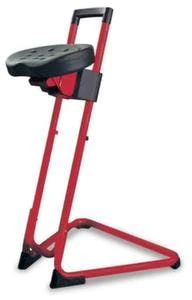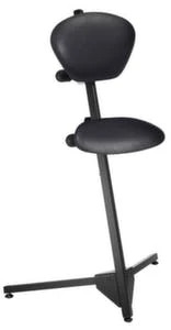 ESD-Stehhilfe, mit Sitzneigungsverstellung und zusätzlich drehbar, Sitz aus PU-Schaum mit Stahleinlage in schwarz, Sitz Höhe 600 – 850 mm, Gestell aus Stahl mit Pulverbeschichtung in schwarz, Gestell mit Gleiter.