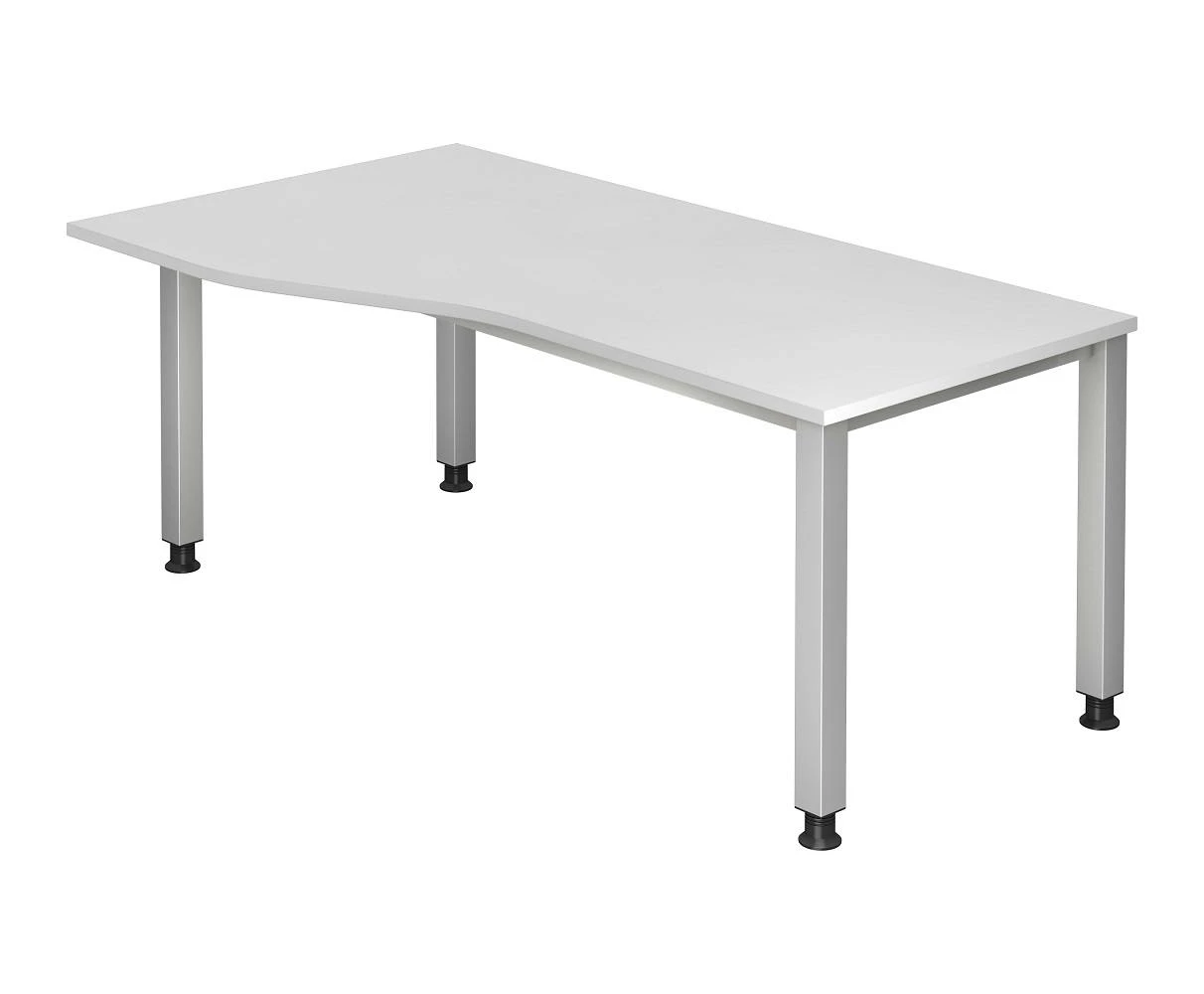 Freiform-Schreibtisch Quebec, mit klassischem, schlichtem Vier-Fuß-Gestell. Der melaminharzbeschichte Schreibtisch auf einem belastbaren Stahl-Quadratrohr-Gestell überzeugt durch sein zeitloses Design, das sich harmonisch in jede Umgebung und Raumgestaltung einfügt sowie durch seine besonders leicht zu reinigende Oberfläche.Langlebiges, pflegeleichtes, verschweißtes Stahl-Gestell, Stahrohr-Gestell aus Quadratrohr mit umlaufendem Stahl-Rahmen, Klassisches Vier-Fuß-Gestell, Arbeitshöhe stufenlos höhenverstellbar von 680 – 760 mm, Winkelschreibtisch mit wendbarer Tischplatte, Tiefer Schenkel kann links oder rechts montiert werden, 25 mm melaminharzbeschichtete Tischplatte aus Holzspanwerkstoff nach DIN 68765, Gestell einbrennlackiert, Lieferung: Zerlegt verpackt im Karton Farbe: Gestell: RAL 9006 Weißaluminium, Tischplatte: Lichtgrau.Maße in mm ca.: Höhe: 680-760 mm, Breite: 1800 mm, Tiefe: 1000/800 mm.