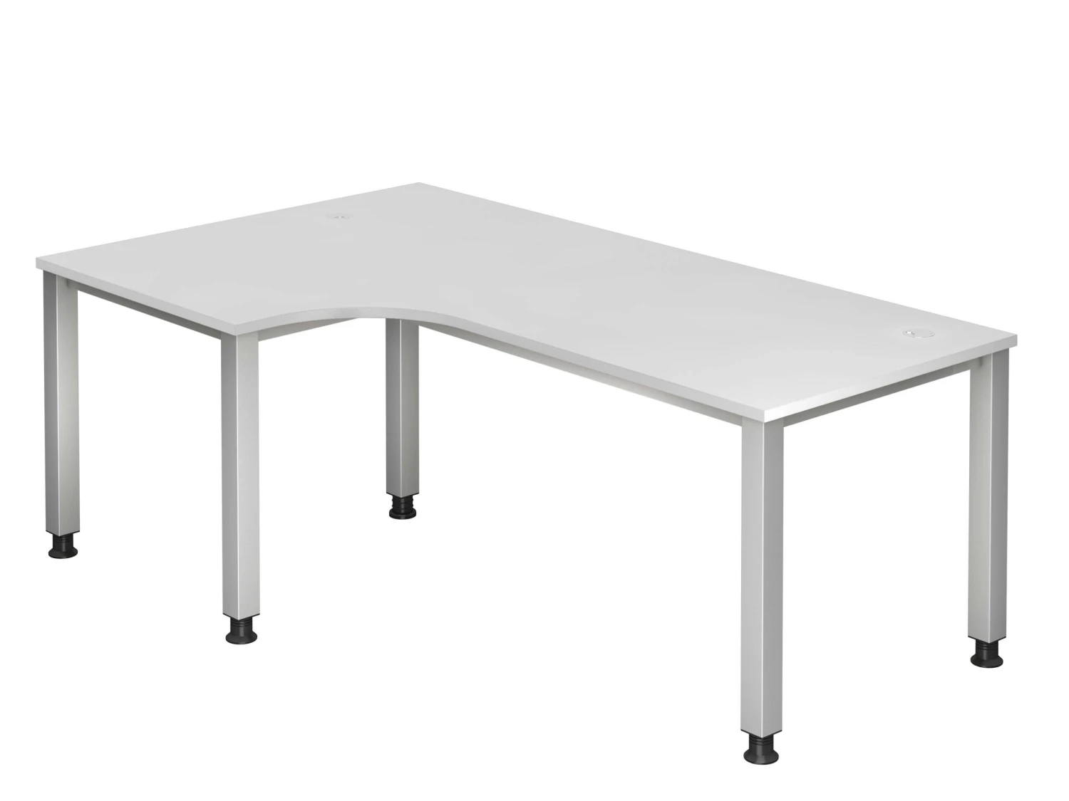 Freiform-Schreibtisch Quebec, mit klassischem, schlichtem Vier-Fuß-Gestell. Der melaminharzbeschichte Schreibtisch auf einem belastbaren Stahl-Quadratrohr-Gestell überzeugt durch sein zeitloses Design, das sich harmonisch in jede Umgebung und Raumgestaltung einfügt sowie durch seine besonders leicht zu reinigende Oberfläche.