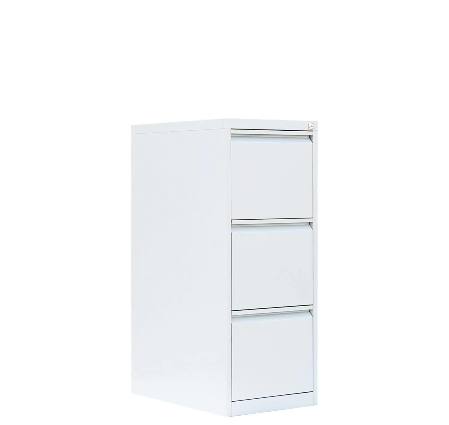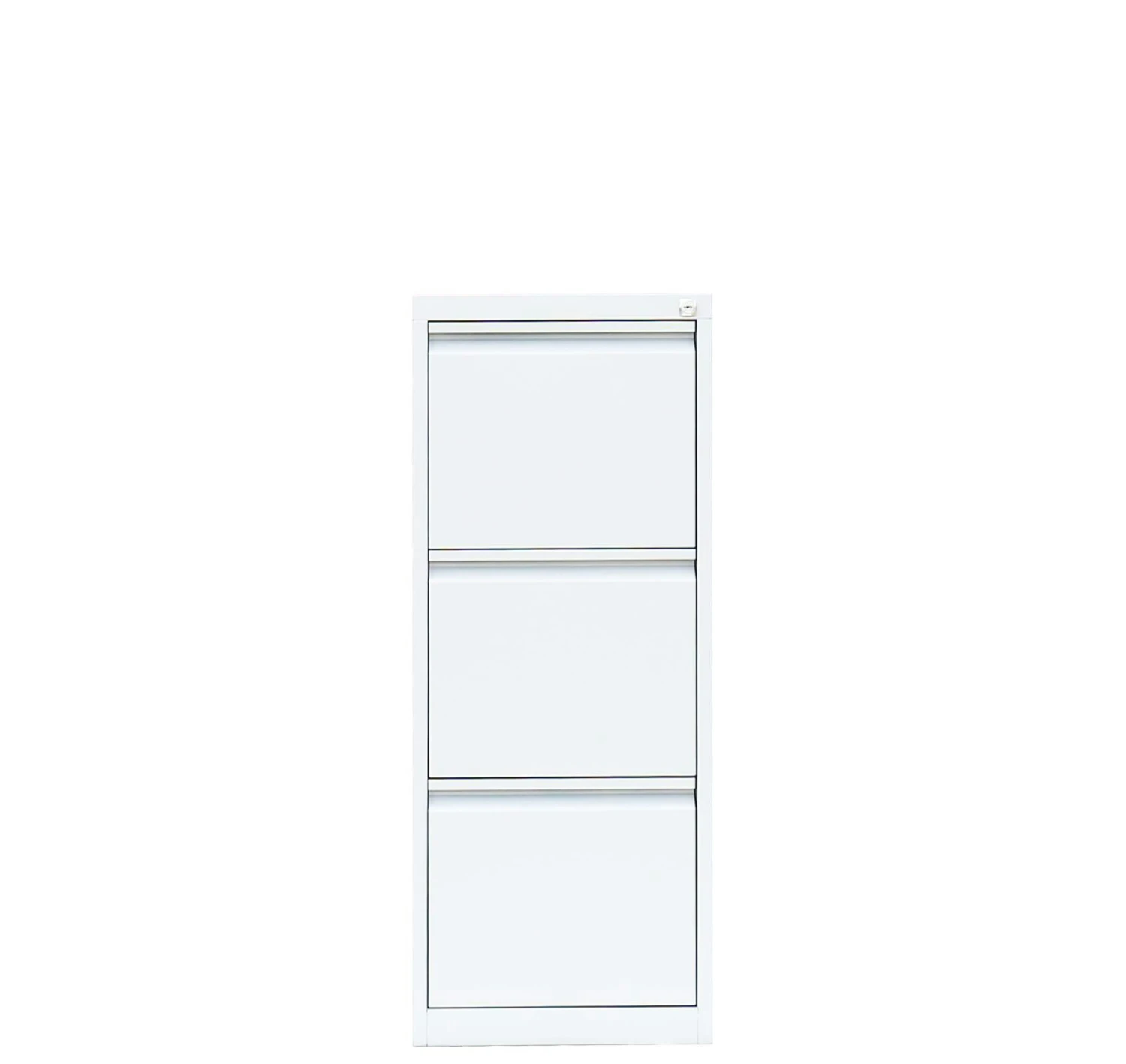 Hochwertiger Profi Stahl-Registraturschrank/Hängeregisterschrank einbahnig für Ihr Home Office oder im professionellen Büro-Einsatz. Der Stahl-Hängeregisterschrank ist mit 3 einbahnigen Schubladen und einer Stahl-Abdeckplatte ausgestattet und bietet Stauraum für DIN A4 Hängemappen. Die Schubladen mit geschlossenen Böden, auf Präzisions-Teleskopführungen sind zu fast 100% ausziehbar und mit Auszugssperren versehen. Die Auszugssperren verhindern des gleichzeitigen Öffnen aller Schubladen und somit das Umkippen des Schrankes. Die durchgehende Griffleiste ermöglicht ein leichtes und angenehmes Öffnen der Schubladen. Die Schubladen sind zentral verschließbar durch ein Zylinderschloss inkl. 2 Schlüssel. Aufklebbare Etikettenfenster sind beiliegend. Der Schrank ist fertig montiert. Der Korpus und die Schubladen sind pulverbeschichtet. Maße: 1010 x 400 x 620 mm (Höhe x Breite x Tiefe) Material: Langlebige, geschweißte Stahlblechkonstruktion Farbe: RAL 9003 Signalweiß