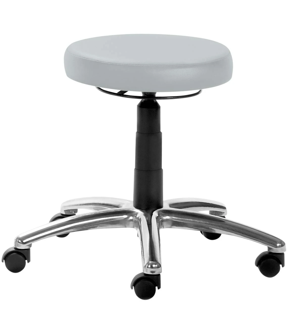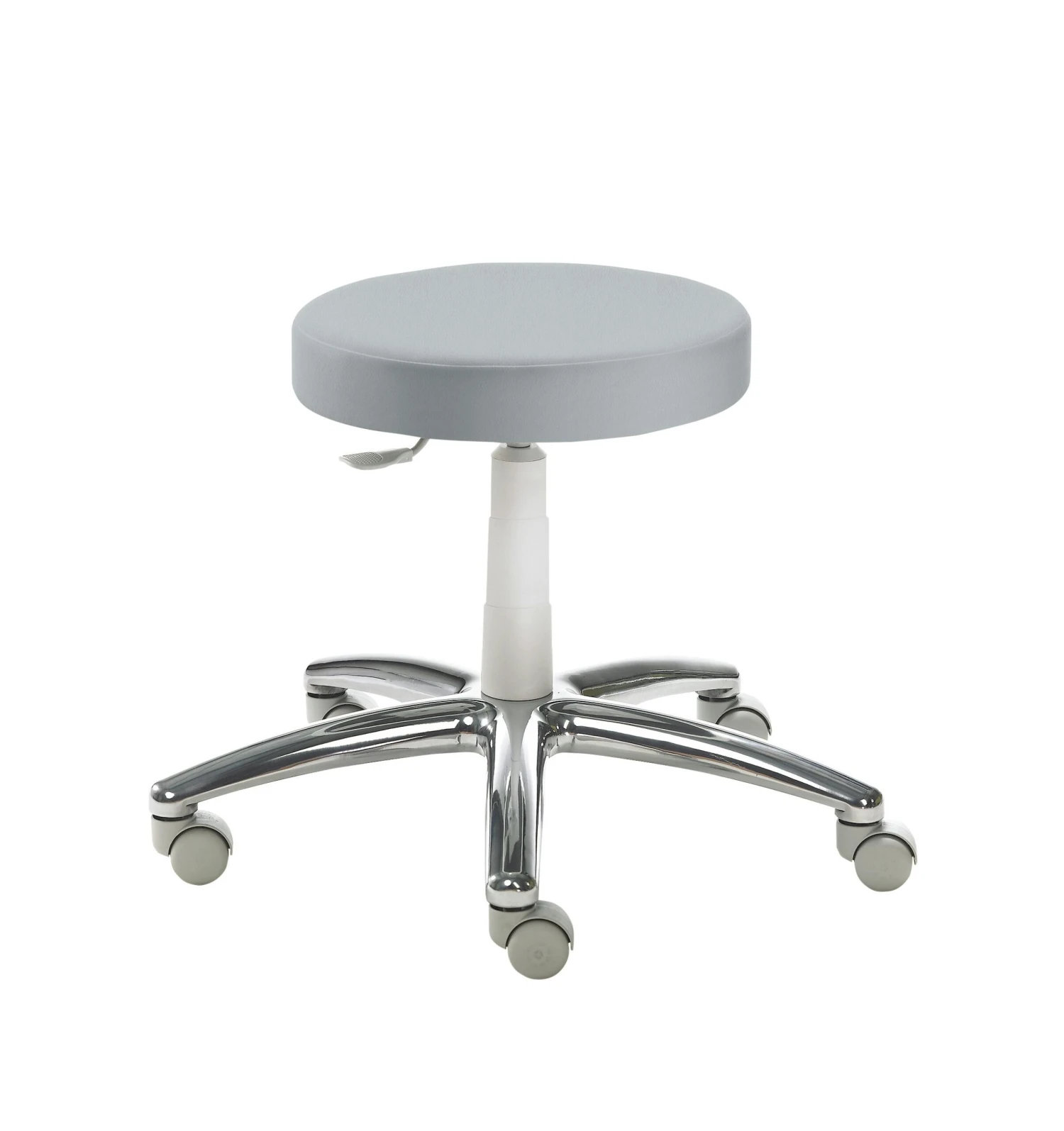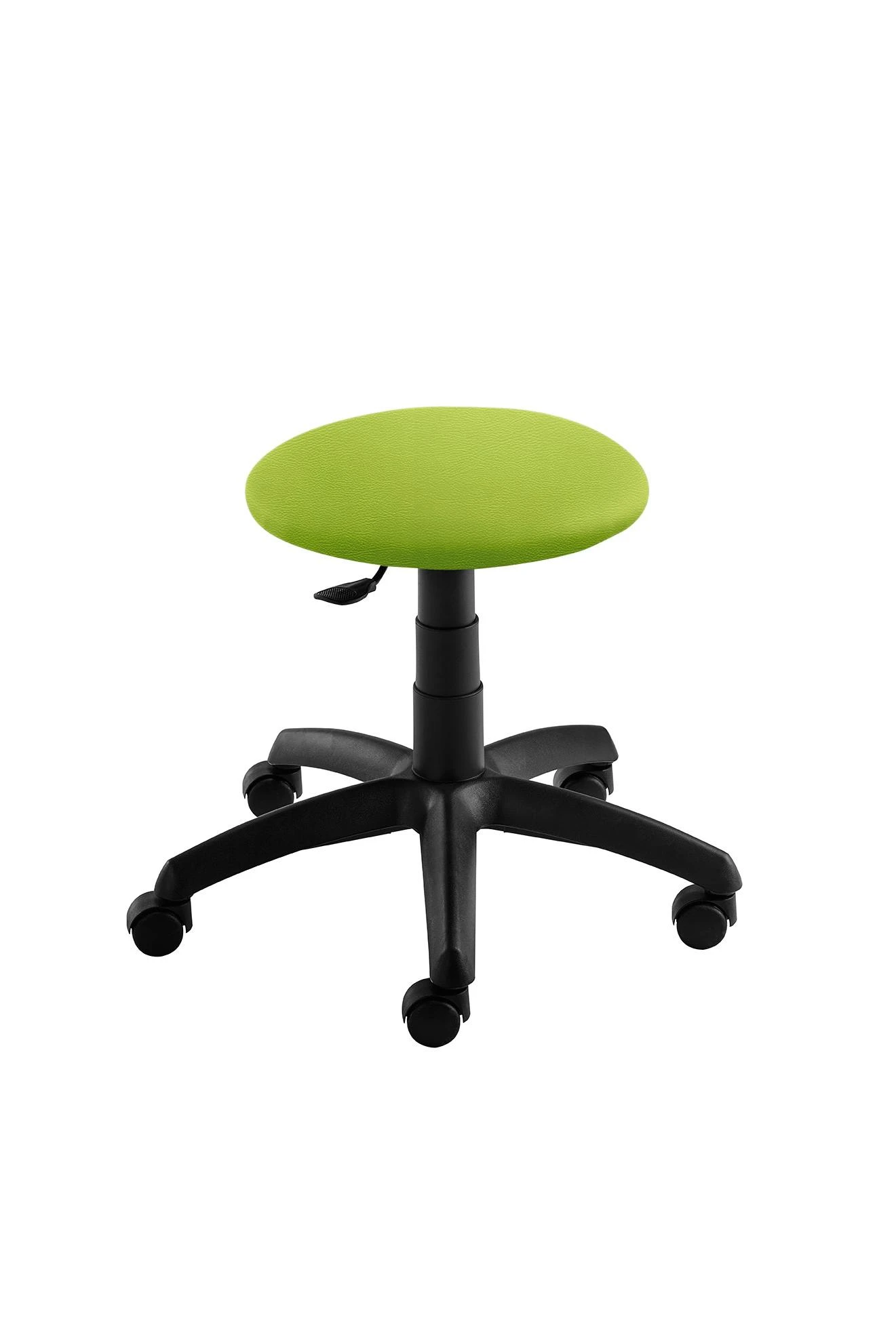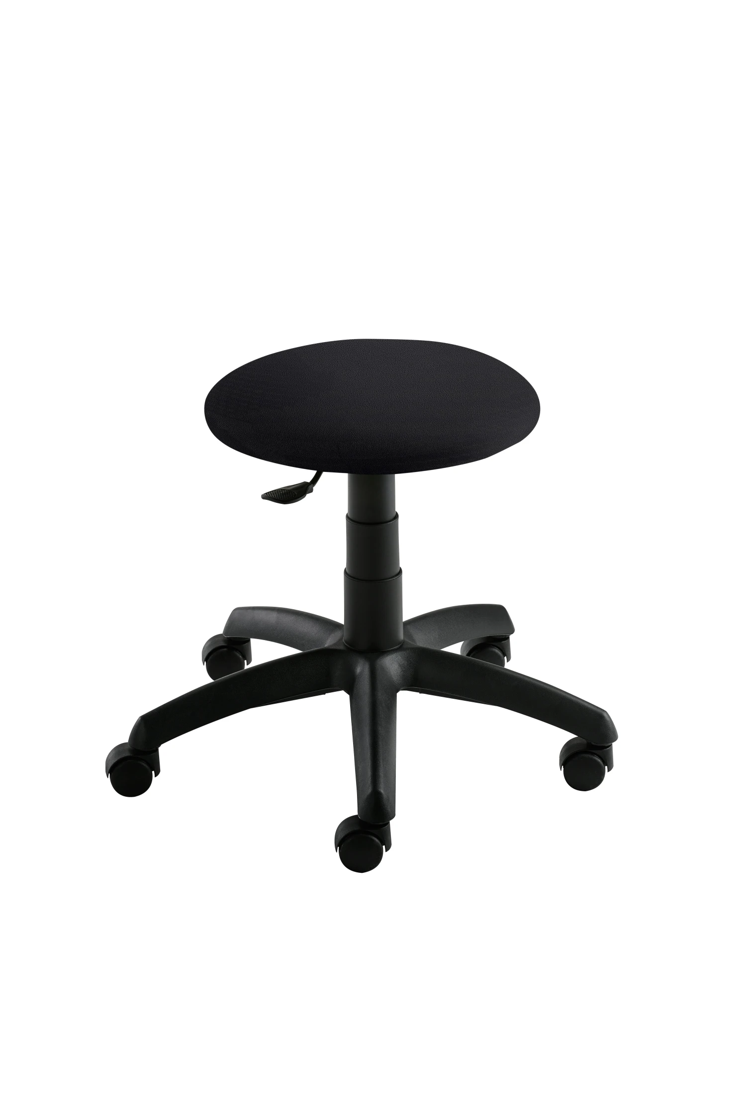 Gestell schwarz, Sitz gepolstert, stufenlose Höhenverstellung durch Gasfeder, Kunststoff-Fußkreuz schwarz, inkl. Rollen für Teppichböden, Sitzhöhe 39 – 50 cm.