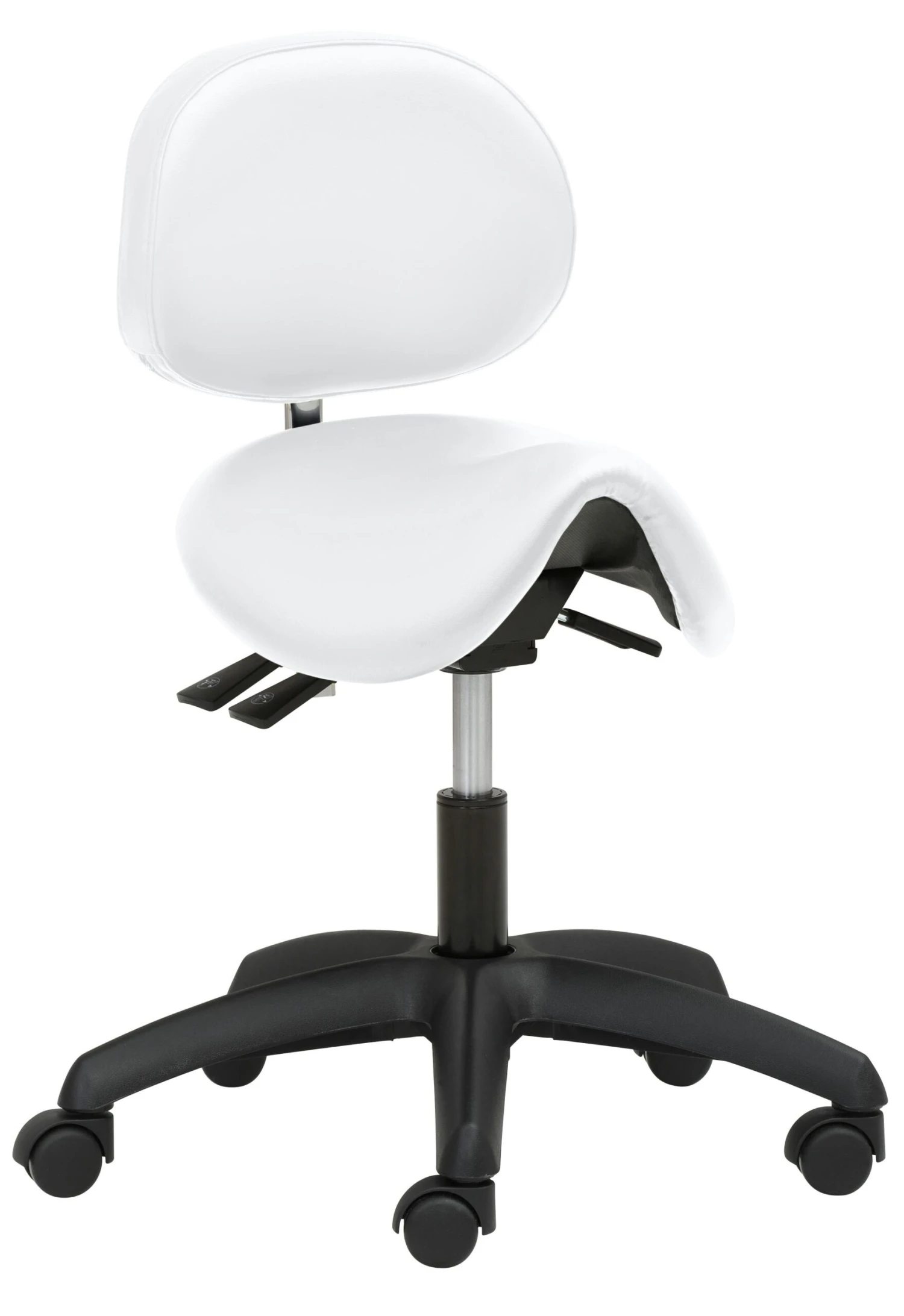 Mit Tellersitz, stufenlose Höhenverstellung durch Gasfeder, Bewegungsfreiheit 360°, Ringauslöser, Alu-Fußkreuz (ø 52cm), inkl. Hartbodenrollen mit Chromblende, Sitzhöhe 41,5 – 52,5 cm.