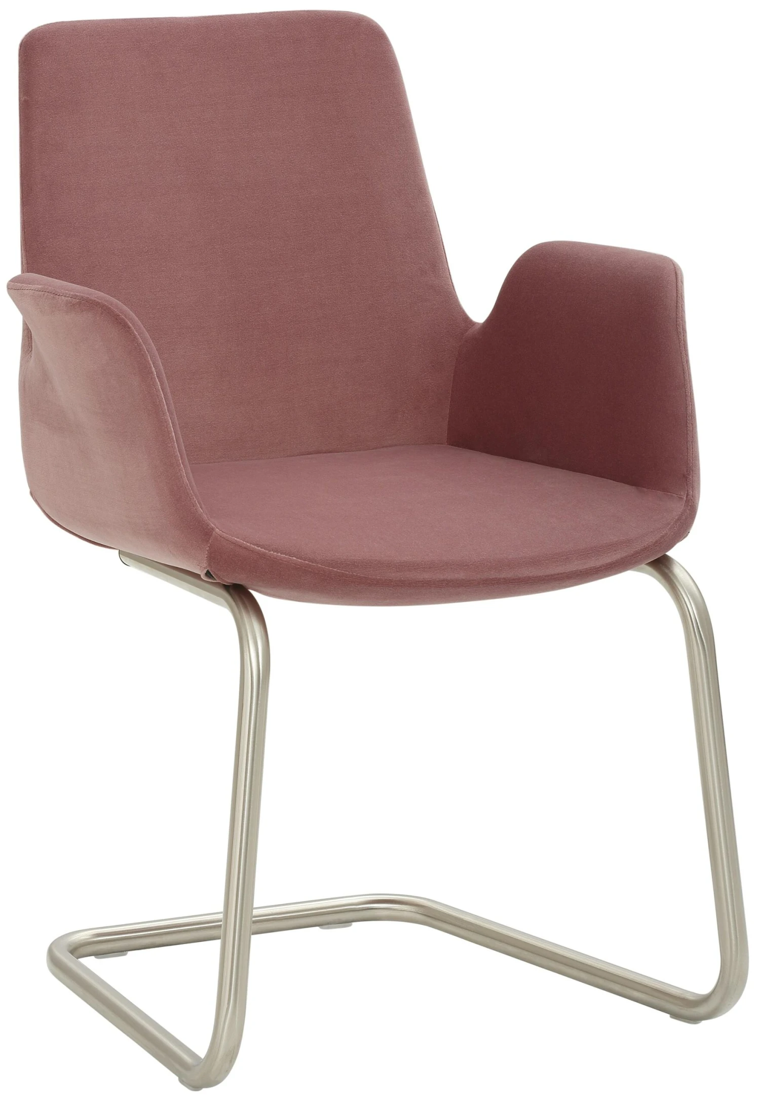 4-Fuß-Gestell, Chrom gebürstet Edelstahllook, mit integrierten Armlehnen, rundum gepolstert, Sitzhöhe 48 cm.