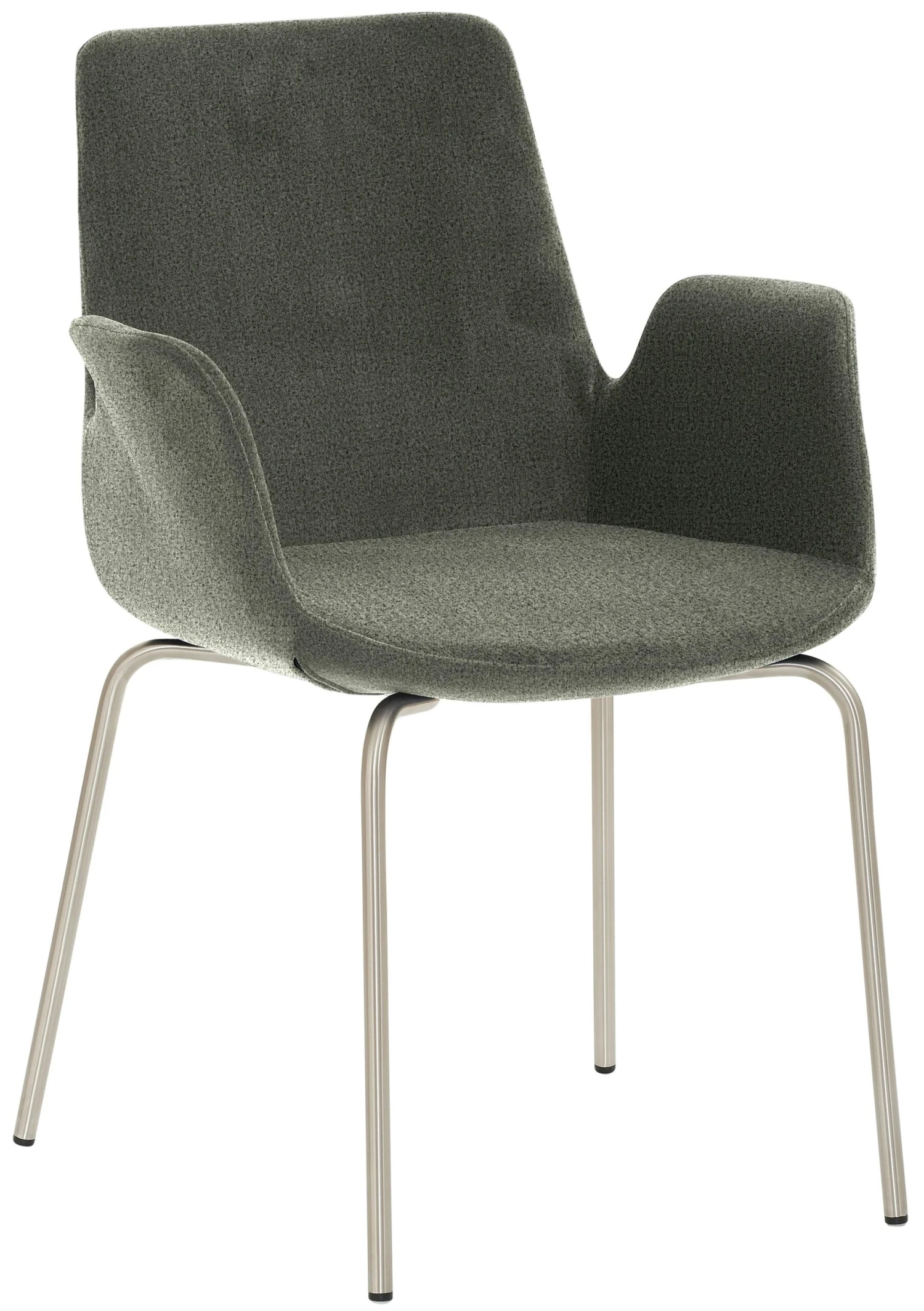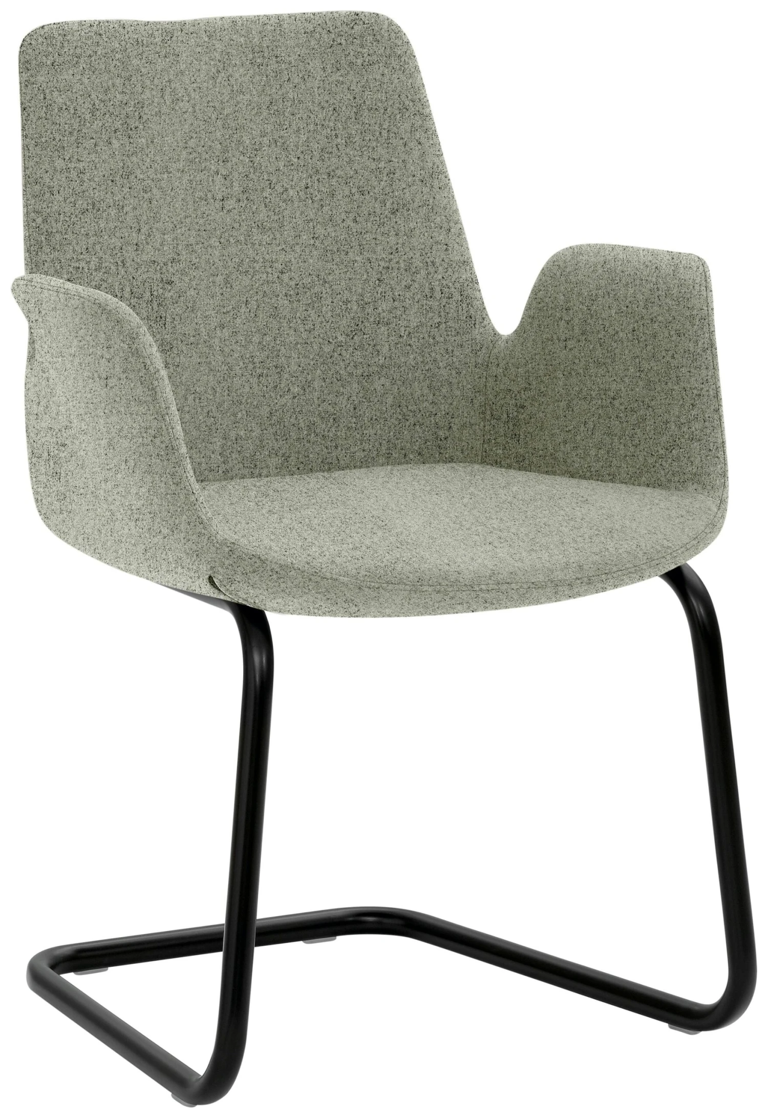 Sternfuß-Gestell, Kunststoff schwarz, 360° drehbar, mit integrierten Armlehnen, rundum gepolstert, Sitzhöhe 49 cm.