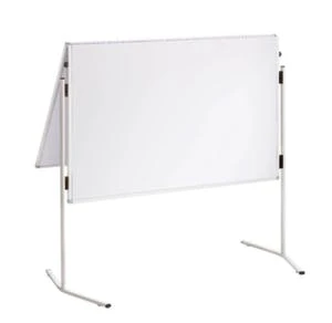 Moderationstafel, Höhe 1950 mm, Tafel Höhe x Breite 1500 x 1200 mm, Tafel aus Karton in weiß, schneller und einfacher Aufbau mit Blitzverschlüssen, klappbare Tafelfläche, Rahmen aus Aluminium mit Kunststoff-Ecken in weiß, Gestell aus Stahl in weiß, 4 Rollen.