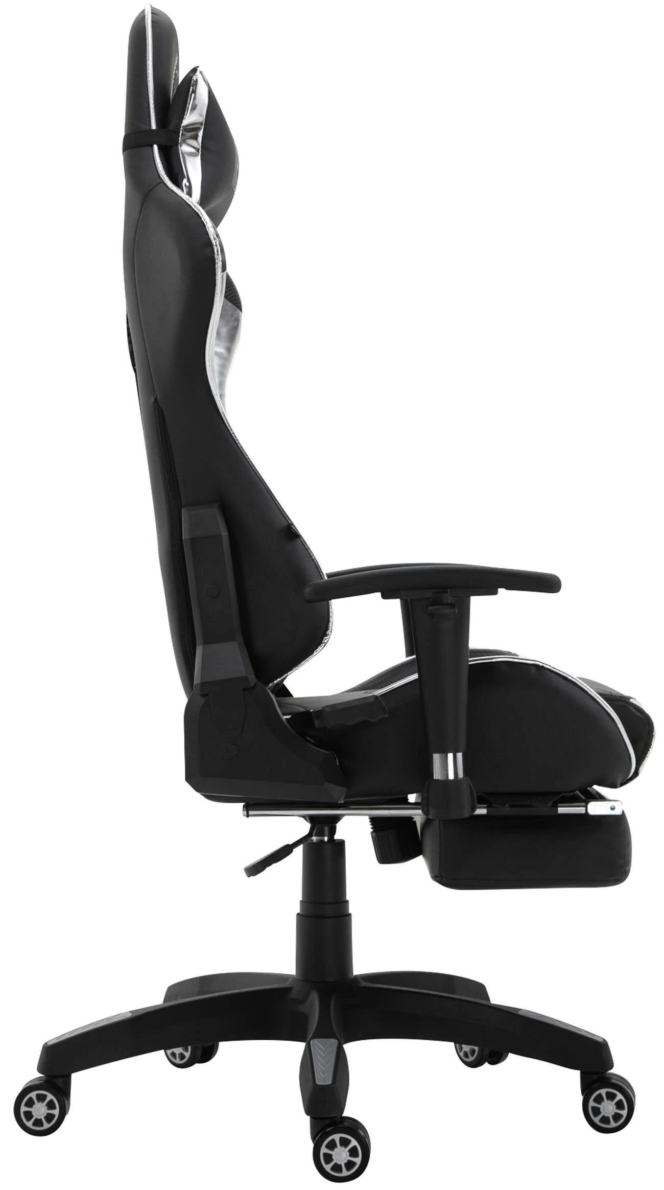Der Bürostuhl Turbo XL überzeugt nicht nur mit seinem sportlichen Look, auch in Sachen Komfort und Belastbarkeit kann ihm keiner etwas vormachen. Die hochwertige Polsterung sorgt für ein komfortables Sitzgefühl, welches auch bei längerem Verweilen bestehen bleibt. Die leicht verstellbare Fußstütze und Rückenlehne sorgen zusätzlich für eine angenehme Pause zwischendurch, bei der sich entspannt zurückgelehnt werden darf und die Beine hochgelegt werden können. Dank der stufenlos verstellbaren Sitzhöhe und der abnehmbaren Nacken- und Rückenkissen garantiert der Schreibtischstuhl jederzeit ein ergonomisches Sitzen. Auch die Höhe der schwenkbaren Armlehnen ist regulierbar. Der Computerstuhl steht standsicher auf fünf Leichtlaufrollen und einem Gestell aus Kunststoff.