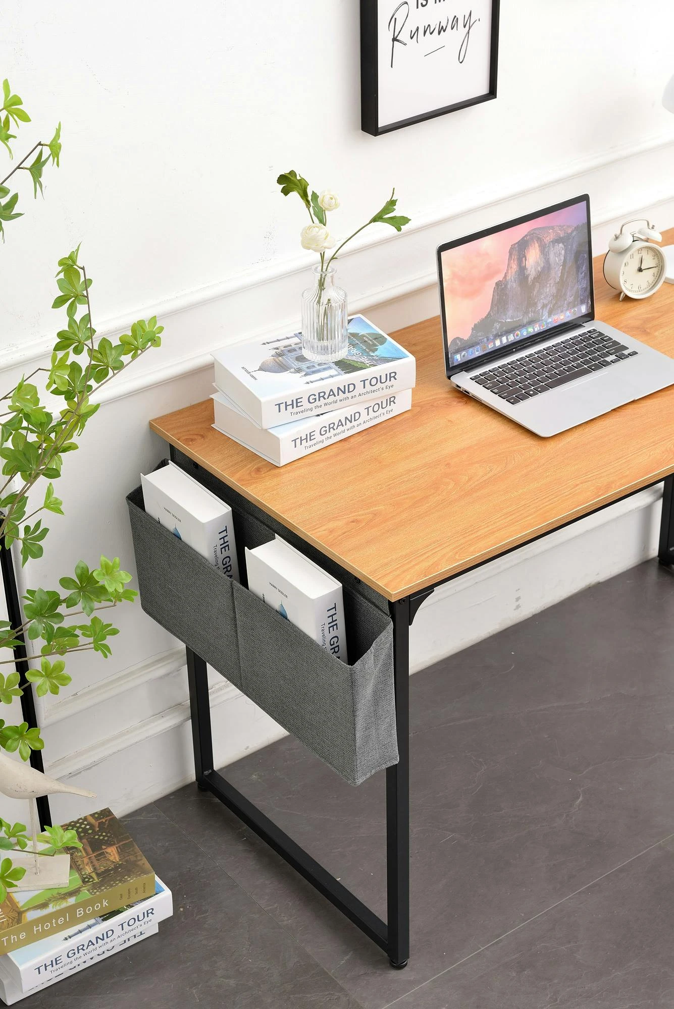 Hochwertige Materialien machen diesen Tisch, in Kombination mit seiner klaren Form, zu einem echten Hingucker. Der Schreibtisch Greeley zaubert mit seiner Reliefoberfläche ein wunderbares Ambiente in den Arbeitsbereich. Die 12 mm starke Tischplatte ist aus MDF gefertigt und liegt dabei stabil und standsicher auf einem Gestell aus lackiertem Stahlrohr. Die Füße sind mit verstellbaren Bodenschonern ausgestattet wodurch der Tisch auch auf leicht unebenen Böden sicher und stabil steht. Durch die verschiedenen Varianten lässt sich dieser Schreibtisch wunderbar in jedes Wohnambiente integrieren. Eine Dokumententasche und ein Kopfhörer-Haken gehören bei der Farbe dunkelbraun und natura noch zur Ausstattung.