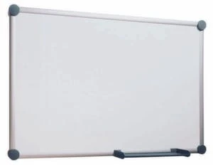 Whiteboard, Höhe x Breite 1000 x 2000 mm, Tafeloberfläche mit Kunststoffbeschichtung, magnethaftend, beschriftbar und trocken abwischbar, Tafel aus Stahl in weiß, Ablageschale, Rahmen aus Aluminium mit Kunststoff-Ecken eloxiert in silber, Lieferumfang inklusive Montagematerial.