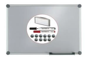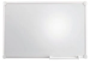 Whiteboard, Höhe x Breite 600 x 900 mm, Tafeloberfläche mit Kunststoffbeschichtung, magnethaftend, beschriftbar und trocken abwischbar, Tafel aus Stahl in weiß, Ablageschale, Rahmen aus Aluminium mit Kunststoff-Ecken eloxiert in silber, Lieferumfang inklusive Montagematerial.