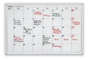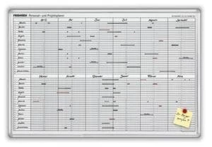 Wochenplaner, Höhe x Breite 600 x 900 mm, Tafeloberfläche magnethaftend, beschriftbar und trocken abwischbar, Tafel aus Stahl in weiß, Wochenübersicht für 25 Positionen, 2 Schreiber, 3 Magnete und Ablageschale, Rahmen aus Aluminium eloxiert in silber.